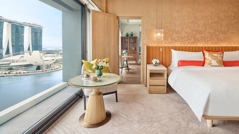 อีกหนึ่งโรงแรมหรูในสิงคโปร์ที่ขึ้นชื่อด้านวิว ห้องพักถูกออกแบบให้มีหน้าต่างสูงจากพื้นจรดเพดาน มองเห็นทั้ง Marina Bay และเส้นทางแข่งที่ส่องสว่างในยามค่ำคืน ภายในตกแต่งด้วยผลงานศิลปะระดับโลก เหมาะกับผู้ที่ต้องการทั้งบรรยากาศการแข่งขันและความละเมียดละไมทางศิลป์