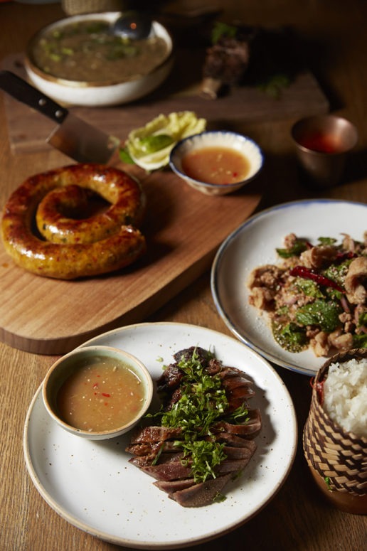 Sanya says that it will take some time for the kitchen to decode those recipes, so for the restaurant’s opening period, dishes are inspired by the local everyday food of the Laotian people. “A lot of what people think is Thai food is actually Laotian,” he explains, “we have the Sai Oua which is known in the north of Thailand, but without turmeric. We also have dishes that are identified as Issan, like larb. But Laos is a landlocked country, the focus is on freshwater fish, herbs, vegetables and grilled meats.”
