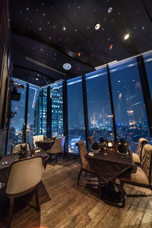 The Sundowner seating takes place from 17:30 – 20:00, where one can enjoy sunset views while The Twiligheter from 20:15 – 22:45 can be enjoyed when the stars light Bangkok’s skies. The dinner is priced at THB 999++ per person, and window tables at THB 1499++ per person.