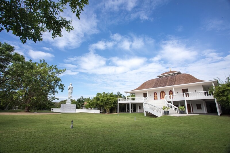 Occupying 7.4 rai (2.92 acre) of land, the complex comprises several buildings. Manasikarn Hall, the main structure, houses a permanent exhibition and sacred objects. The Spiritual Life building showcases the teachings of the Buddha with the aim to foster correct understanding of Buddhism. There is also a meditation hall with instructors to provide basic meditation instruction to interested visitors, a meditation garden, Dhamma Café serving a variety of beverages, baked goods and snacks, and a semi-outdoor Snack and Nap corner. A bazaar on the compound offers products made by the local community and meditation practitioners, including handicrafts made from local materials, Thai sweets and local foods, which you can buy and consume onsite or take home as souvenirs. A recently opened art gallery showcases a rotation of art works; the current exhibition, featuring paintings of the goddess Kuan Yin by a renowned Chinese artist, will be on view until mid-November.